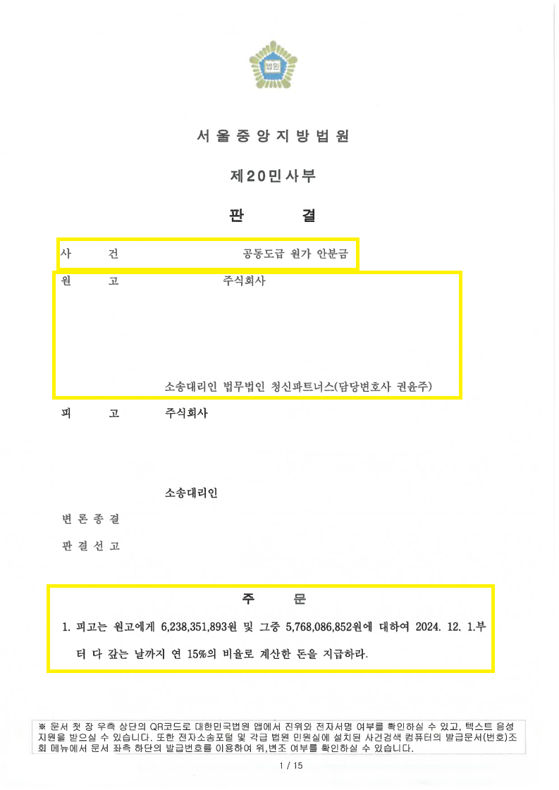 ⚖️ 소송 결과 : 60억 원대 원금 전액 및 고율의 지연손해금 완승